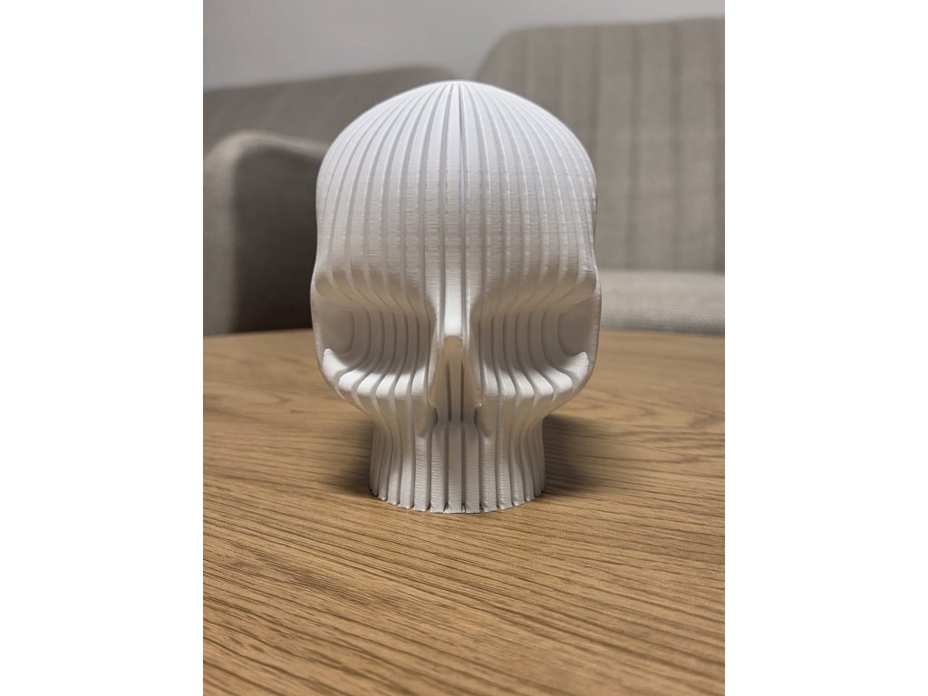 Vneste do svého interiéru špetku temné elegance s touto jedinečnou 3D tištěnou lebkou. Moderní design s vertikálními žebrovými liniemi dodává klasickému tvaru lebky futuristický nádech.