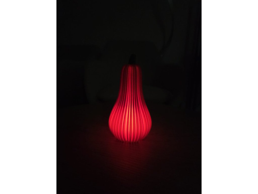 Tahle dýně není jen dekorace – je to světelný objekt, který rozzáří každý interiér teplým podzimním kouzlem. Vyrobená pomocí precizního 3D tisku z ekologického PLA plastu, kombinuje klasický tvar dýně s moderním žebrovaným designem. Vnitřní LED osvětlení vytváří jemné oranžové světlo, které navodí útulnou atmosféru nejen na Halloween.